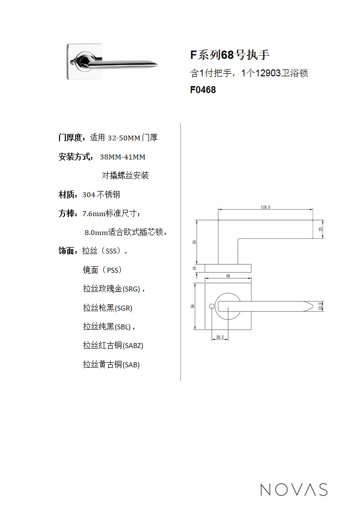 含1付拉手,3個12903廚衛電器鎖 F0468