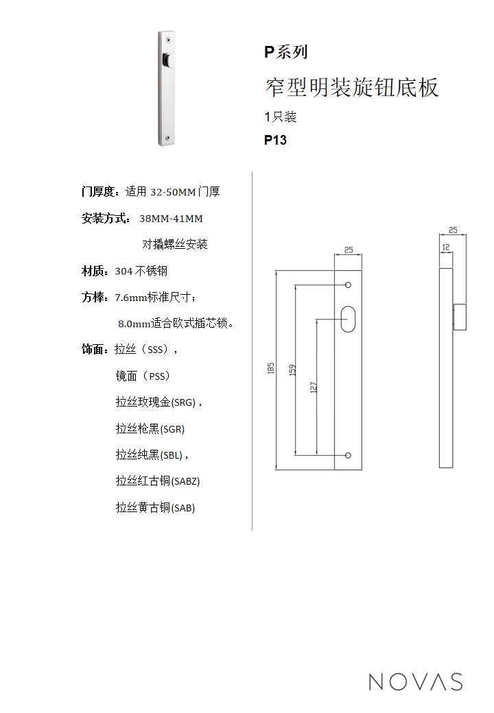 T系列50號執手 明裝旋鈕底板
