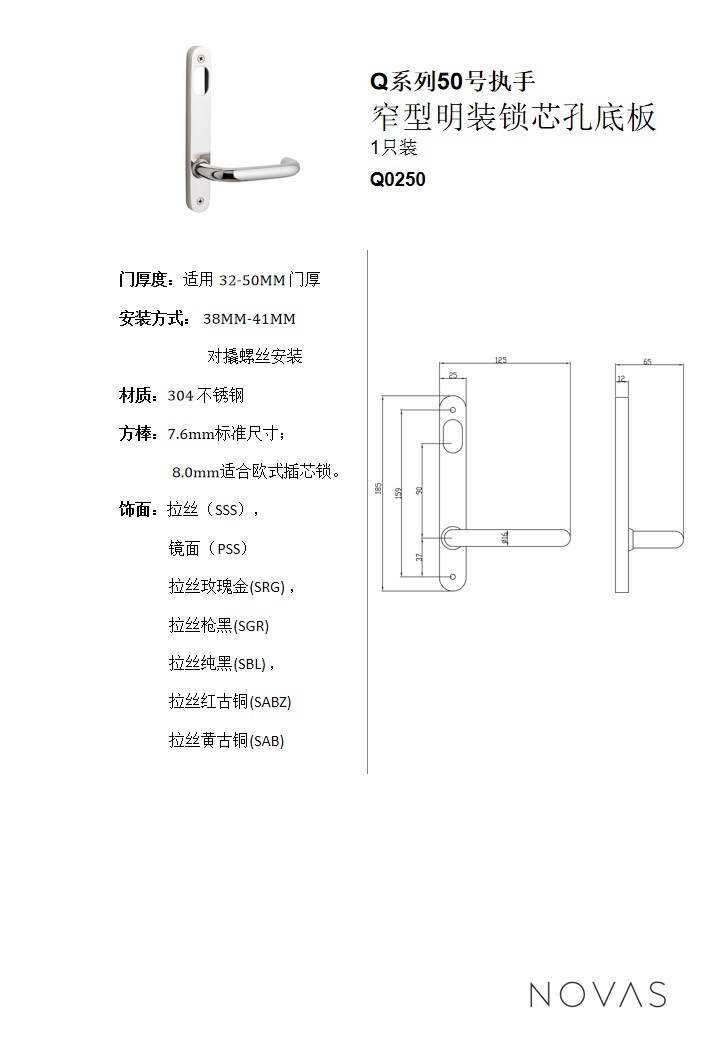 窄型明裝門鎖孔底板1只裝 Q0250