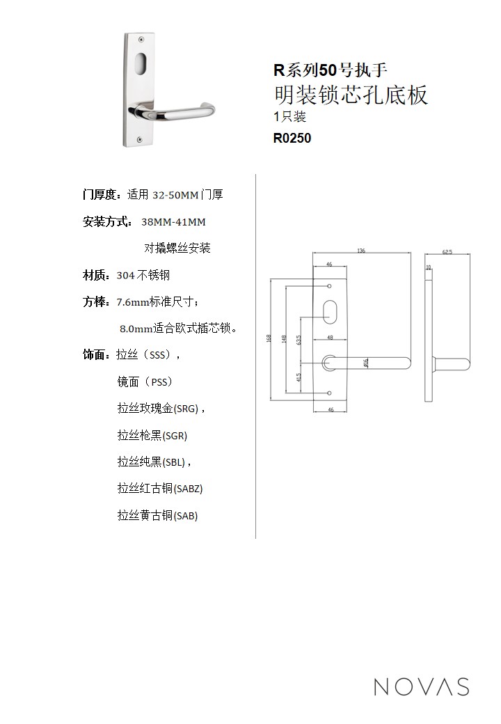 R一系列50號執手 明裝防盜鎖芯孔底板