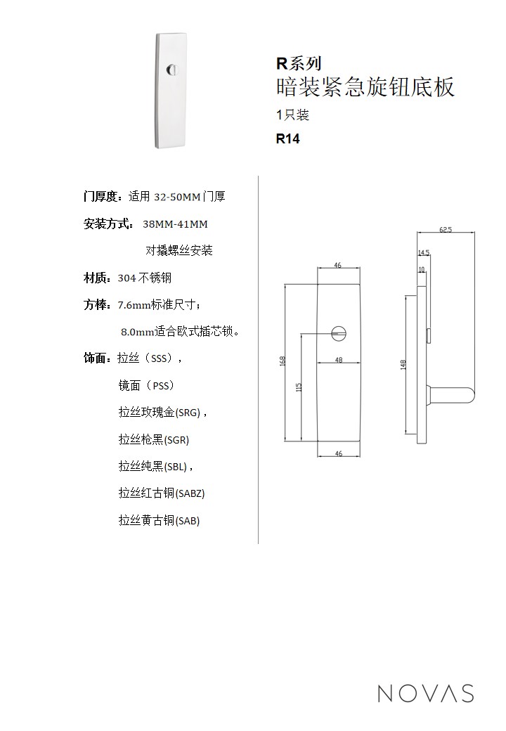 R系列50號執手明裝殘疾人旋鈕帶顯現器底板