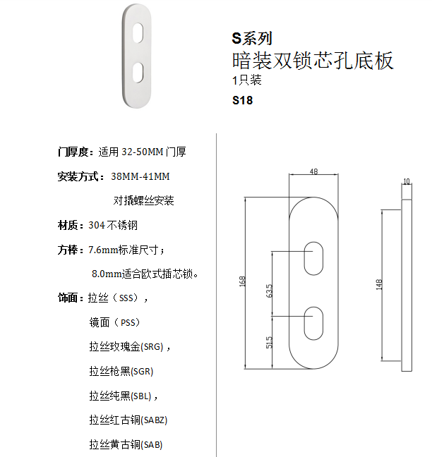 S系列 暗裝雙鎖芯孔底板