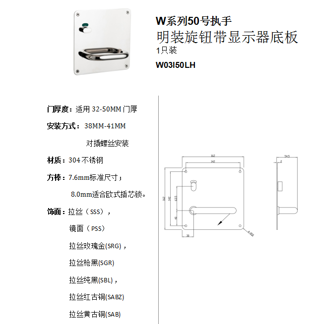 W系列50號執手 明裝旋鈕帶顯現器底板