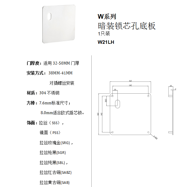 W系列 暗裝鎖芯孔底板