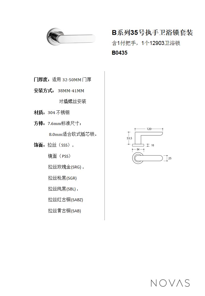 > B系列產品35號執手廚衛電器鎖服裝