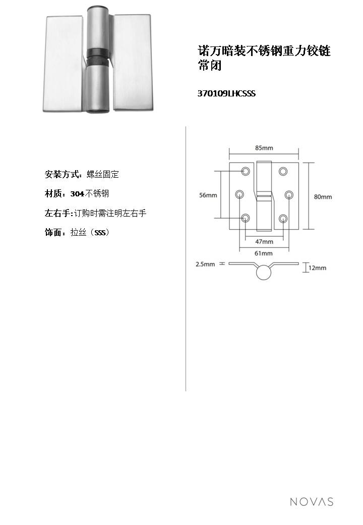 諾萬暗裝不銹鋼304重力作用搭鈕 常閉