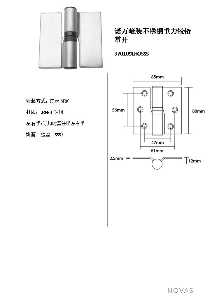 諾萬暗裝不銹鋼重力搭鈕 常開