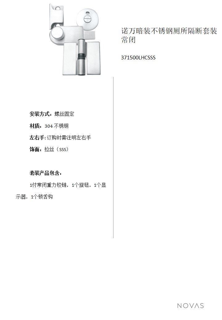 諾萬暗裝不銹鋼板茅廁阻隔間距套裝 常閉