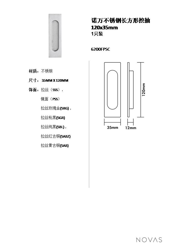 諾萬不銹鋼長方形挖抽 120x35mm