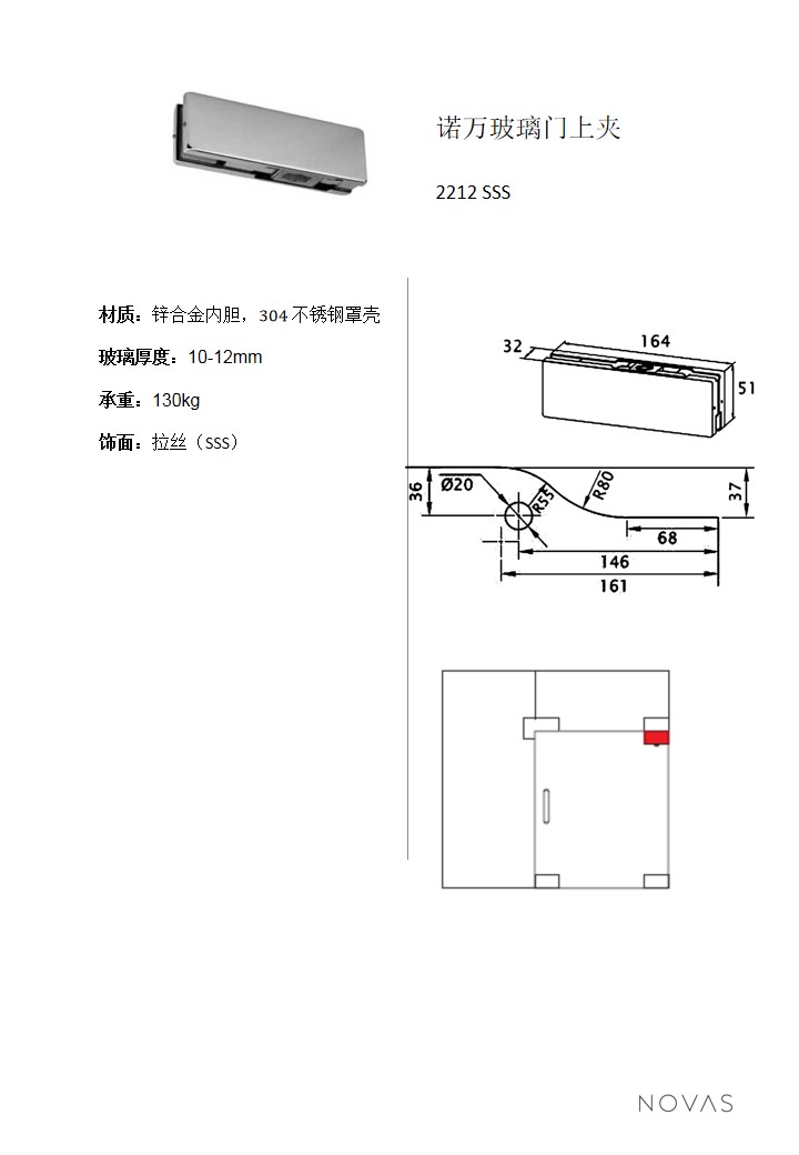 諾萬玻璃門上夾